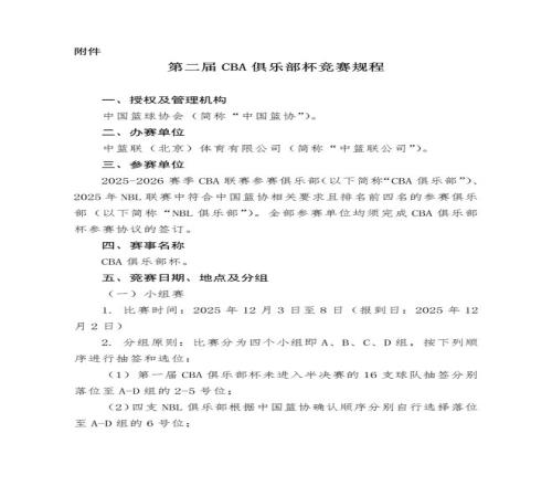 2025-2026赛季CBA联赛参赛俱乐部(以下简称CBA俱乐部)2025年NBL联赛中符合中国篮协相关要求且排名前四名的参赛俱乐部(以下简称NBL俱乐部)”。