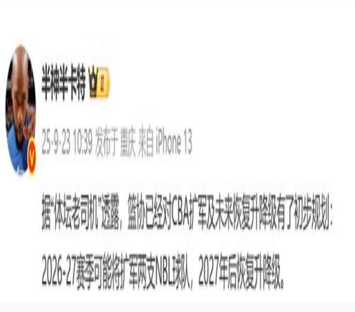而2026-27赛季如果真的可以扩军的话,对于CBA就是历史性的时刻了。扩军两支球队的情况下,在27年之后将恢复升降级。这扩军的两支球队肯定也是为了升降级做准备了。那么在那个时候,几支CBA摆烂的球队估计也不敢那么轻易摆烂了。因为NBL对于CBA的向往一直都非常大,一旦CBA球队降级到NBL,他们各个方面的利益都会遭受损失,这可以增加CBA的精彩程度,也可以避免倒数球队过度摆烂。
