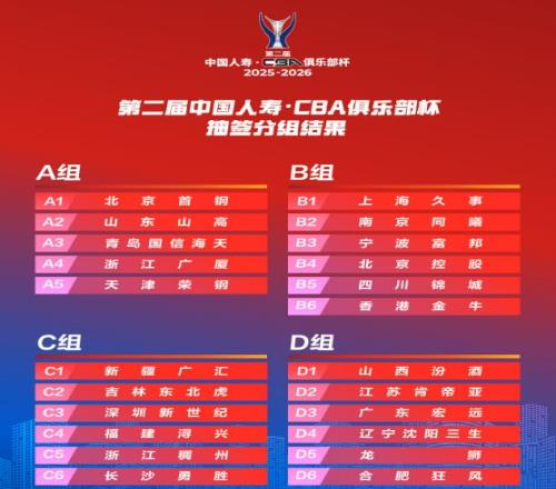 北京时间11月11日,第二届CBA俱乐部杯赛的赛区抽签仪式结束,A组是长沙赛区,由北京与广厦领衔仅有5队,其余3组均是6队,分别是B组南昌赛区,C组南宁赛区,D组武汉赛区,其中上海队是首届CBA俱乐部杯冠军,布莱德索FMVP。