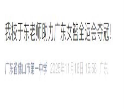 于东老师是国家级运动健将,身高1.93米,毕业于华南理工大学行政管理系,拥有极为丰富的顶尖赛事经历:2012-2013赛季、2013-2014赛季,她代表山西队两夺WCBA(中国女子篮球联赛)冠军;2017年9月,代表广东队斩获第十三届全运会女篮冠军,凭借出色表现荣记大功,并被授予“广东省三八红旗手”荣誉称号;2025年4月,代表广东队夺得WCBA冠军。此外,她还曾先后入选国少、国青、国奥集训队,2018年更是进入国家队备战亚运会,在U16、U18女篮亚洲青年锦标赛中均助力球队夺冠,竞技实力与大赛经验备受认可。2025年7月,于东老师入职佛山一中,后因备战第十五届全国女子篮球成年组比赛,被广东省二沙体育训练中心借调为重点运动员,全力投入赛前训练。