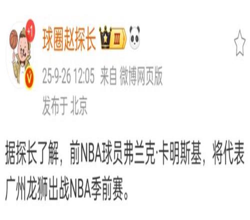 当然,广州龙狮想要获得好成绩,外援肯定是关键,上赛季他们的外援几乎都是CBA最低档的,但本赛季他们开始了提升,根据媒体报道,NBA名将卡明斯基会加入广州龙狮,出战NBA季前赛,这也算是对于他的一次考核。