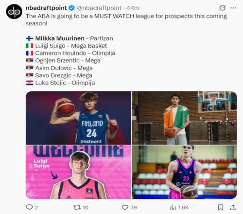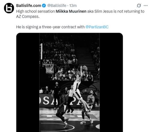 NBADraftpoint也发声,下赛季需要关注的国际新秀第一个就是穆里宁,因为穆里宁在明年三月就将年满19岁,他可以参选明夏的NBA选秀,加上他在塞尔维亚豪门贝尔格莱德游击队打球,他的选秀顺位不会太低。