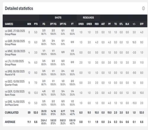 穆里宁在欧洲杯场均11.1分钟,拿到6.6分1.9篮板0.4抢断0.6盖帽,命中率60.6%,两分命中率87.5%,他的天赋受到很多的NBA球探关注。此前他的母亲克拉索宁就暗示儿子将寻求职业发展,NBL、欧洲联赛都有球队招募。