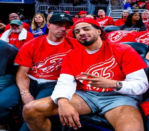 步行者官推晒出了哈利伯顿与麦康纳场边观战的照片。
