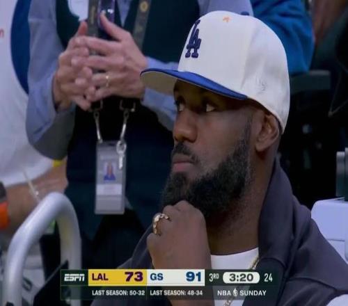 本场比赛詹姆斯坐在替补席观看儿子布朗尼比赛,而布朗尼也比较争气,6投2中,三分球3投1中!表现比第一场12投1中好太多了。