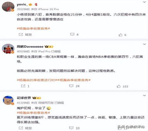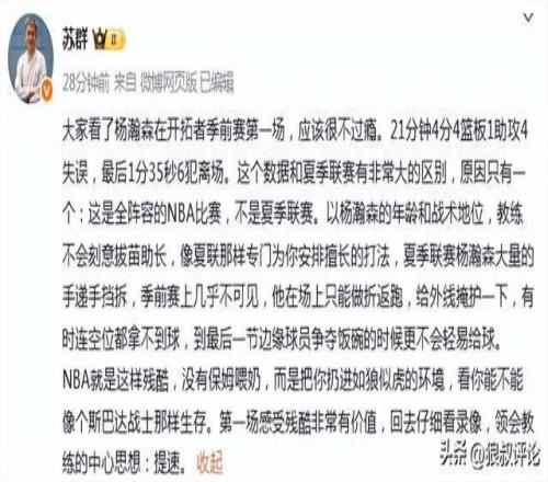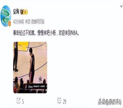 篮球评论员殳海发文点评:事非经过不知难。慢慢来吧小杨,欢迎来到NBA。
