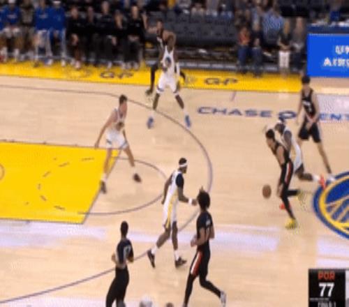 下半场,杨瀚森终于得分了,与队友挡拆配合期间,杨瀚森顺下轻松上篮得分,暂停期间小杨笑嘻嘻地与教练组击掌,终于露出了笑容;之后杨瀚森在禁区拼抢篮板并且补篮得分,篮下卖力防守逼迫勇士24秒违例,可惜外线三分再次打铁,单节3中2拿到4分2篮板,一顿操作后杨瀚森明显累了,双手扶着膝盖直喘粗气。