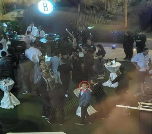 疑似澳门某酒店工作人员晒出的一组照片显示,蔡崇信等人正在与篮网队球员聚会。虽然照片有些模糊,但依稀还是能够辨认出三人。