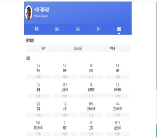 四场季前赛过后,他场均可获18.1分钟的出场时间,场均可砍下9.5分5.3篮板1助攻1抢断,同时出现1.3次失误,投篮命中率为68.2%。