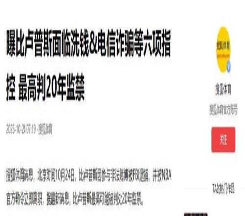 记者梳理比卢普斯案进展:若全部罪名成立将面临最高20年监禁 2025-10-24 07:12·懂球帝