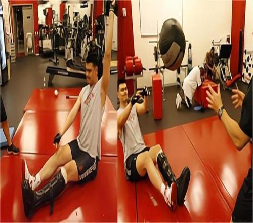 在理疗师陪同下,他先是完成了90分钟的核心力量训练,随后加练200次勾手投篮。