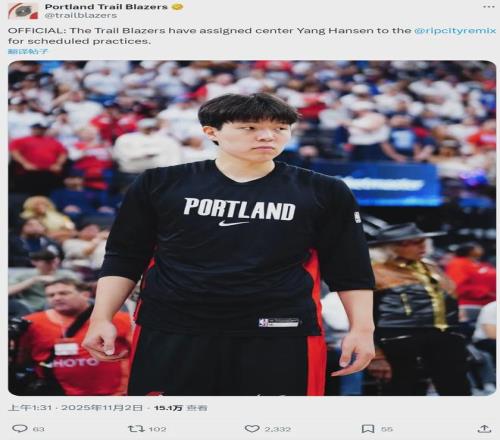 开拓者随队记者Danny Marang报道,如果杨瀚森之后在开拓者的出场时间有限,那么他将在发展联盟和NBA之间频繁往返。杨瀚森工作室正式回应:杨瀚森将加大训练量,增强体能储备的同时打磨个人技术,希望大家给这个年轻人多一点时间。