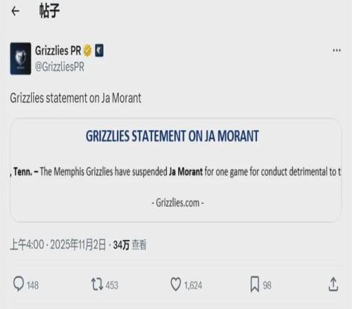 不管在NBA还是发展联盟,杨瀚森必须提升自己的能力,才能得到教练的信任,获得更多上场时间。接下来说说莫兰特被禁赛的事,今天灰熊官方宣布,莫兰特因有损球队利益的行为,被禁赛一场。莫兰特因此损失27.2万美元!