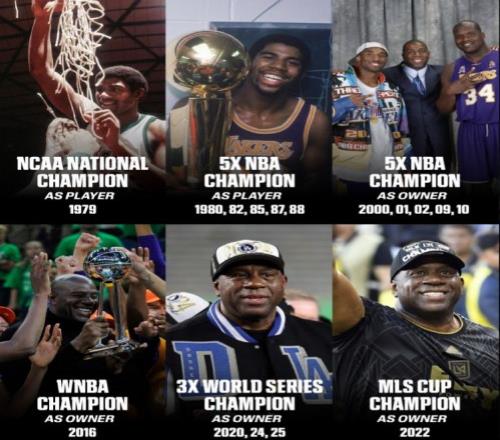 除此之外,魔术师约翰逊作为洛杉矶火花小老板夺得1冠,作为洛杉矶FC小老板夺得1冠,作为洛杉矶道奇小老板夺得3冠,堪称是人生赢家。