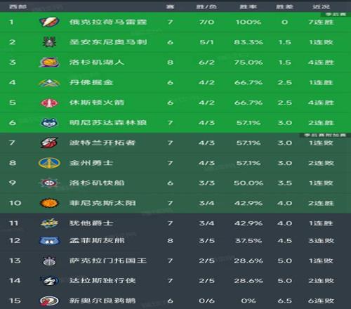 北京时间11月5日,今日的NBA常规赛结束了所有比赛,我们看看西部的排名!