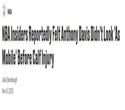 北京时间11月8日,独行侠用东契奇换浓眉的交易,是不是史上最蠢的交易?据The Athletic记者Clark报道,在独行侠队上周官宣浓眉因小腿受伤将缺席多场比赛之前,已有多位NBA内部人士察觉到他的移动速度出现了下滑。