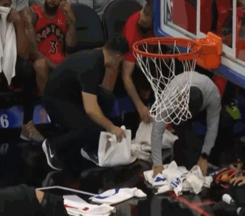 当时,英格拉姆在赛场边情绪失控,拿起一个水瓶,愤怒地砸向场地。这个水瓶弹起击中了费城76人队一名工作人员的面部,也吓了队友巴恩斯一跳。英格拉姆显然看到自己的水瓶击中了工作人员,却没有立刻道歉,只是尴尬地低头盯着地面。更糟糕的是,在这位可怜的工作人员和同事们不得不清理完液体、比赛才能恢复的过程中,英格拉姆就坐在原地无动于衷。