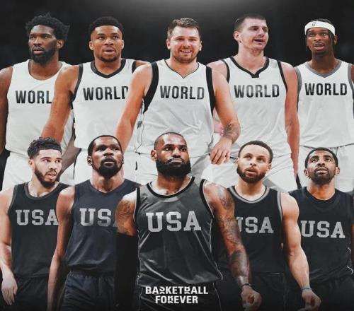 世界队的内线,绝对能碾压美国队:约基奇、文班亚马和字母哥!外线还有东契奇和亚历山大,这个首发阵容谁能顶得住?美国队应该还是詹杜库领衔,内线只有浓眉和阿德巴约。而且浓眉打打停停,能不能打全明星还是未知数。