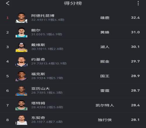 本季不知哪天的得分榜,好像不是按身高来的吧。