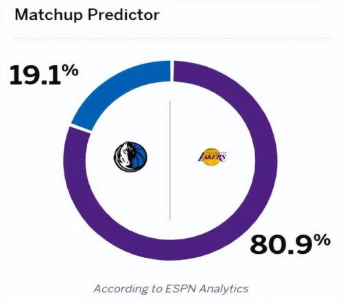 作为对比,湖人队迎来东契奇之后,球队战绩节节攀升,目前以13胜4负的战绩,豪取5连胜,排名高居西部第二,这笔三方交易真是赚大了。赛前,美媒ESPN对本场比赛进行了预测,湖人胜率高达80.9%,独行侠胜率则仅有19.1%,差距非常明显。