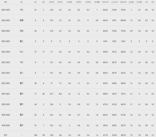 18年-25年,短短七年时间里,班巴效力过的球队有魔术、湖人、费城、快船、鹈鹕,以及现在的猛龙,迄今为止常规赛场均出战16.8分钟得到6.8分5.4板1.3帽,季后赛场均亮相3.3分钟仅有0分1板0.3助0.3帽进账。