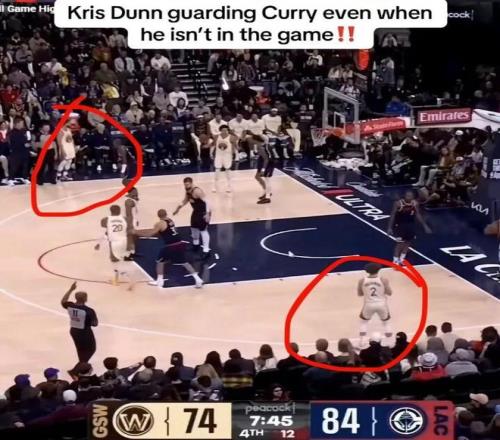 库里都下场了 邓恩还警惕防着他呢