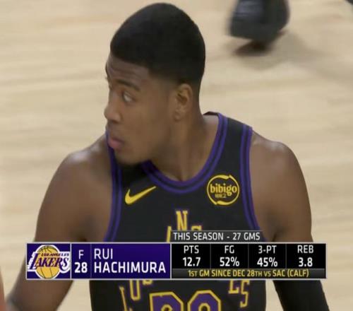 湖人重要轮换球员八村垒时隔7场复出,本场被安排替补登场,上一次出战还是2025年12月29日(北京时间)。