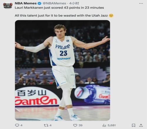 还有美媒在吐槽:马尔卡宁在23分钟内拿了43分啊,这样的天赋被浪费在爵士了。