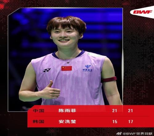 据人民日报消息,当地时间8月30日,巴黎羽毛球世锦赛进行半决赛的争夺。女单赛场,中国队选手陈雨菲以2比0击败韩国队选手安洗莹,晋级决赛。
