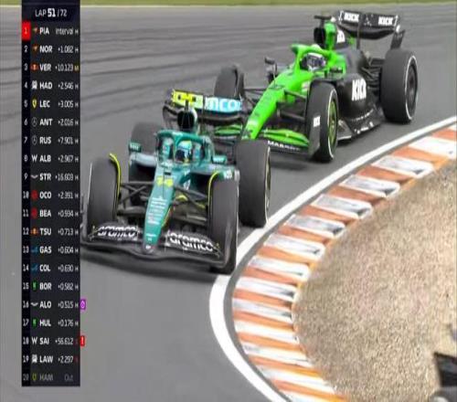 起步方面:维斯塔潘在2号弯前卡住内线,并在4号弯超越诺里斯上升至第2!