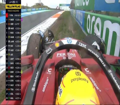 第26圈:诺里斯向工程师询问汉密尔顿上墙的原因,并希望工程师持续反馈赛道的状况;
