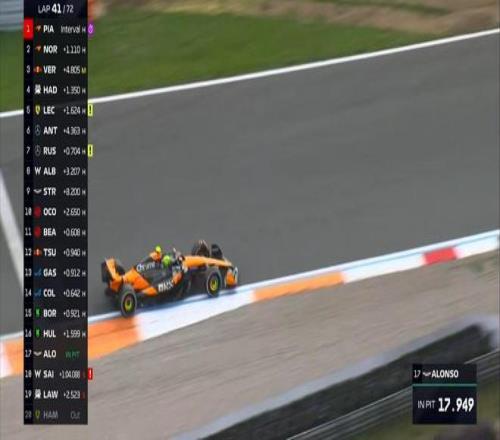 第20圈:角田的软胎进站执行一停,出站后被阿隆索undercut;