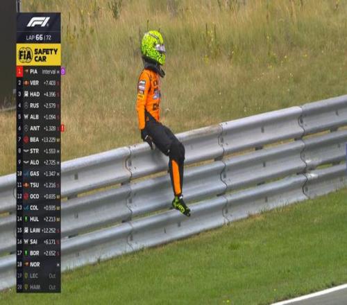 北京时间8月31日,F1荷兰大奖赛正赛结束。皮亚斯特里夺冠,维斯塔潘亚军,哈贾尔季军&生涯首个领奖台。拉塞尔第4,阿尔本第5,贝尔曼第6,斯特罗尔第7,阿隆索第8,角田裕毅第9,奥康第10。诺里斯爆缸退赛,勒克莱尔遭遇安东内利“鱼雷”退赛,汉密尔顿上墙退赛。