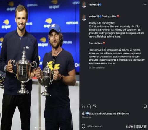 2025年8月31日,梅德韦杰夫在社交媒体上发布了一封深情的告别信,宣布与合作长达8-10年的教练吉尔斯·塞瓦拉分道扬镳。“感谢你,吉尔斯 ❤️我们共同度过了精彩的8-10年,20个冠军头衔,世界第一排名,但最重要的是无数令人开怀的时刻和将永存心间的记忆。”