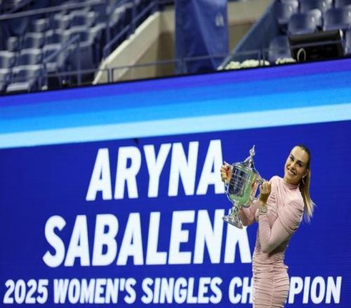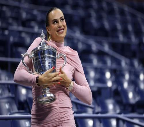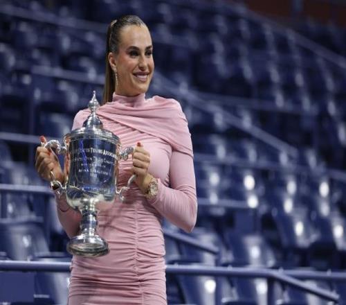 9月7日,萨巴伦卡2-0击败阿尼西莫娃,成功卫冕美网女单冠军。赛后,萨巴伦卡一袭粉裙拍摄冠军写真。