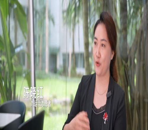 当年还是学生的陈晓红在中华广场门口“偶遇”九运会志愿者招募活动。比赛期间,她被分配到了广东省人民体育场,负责现场播报工作。