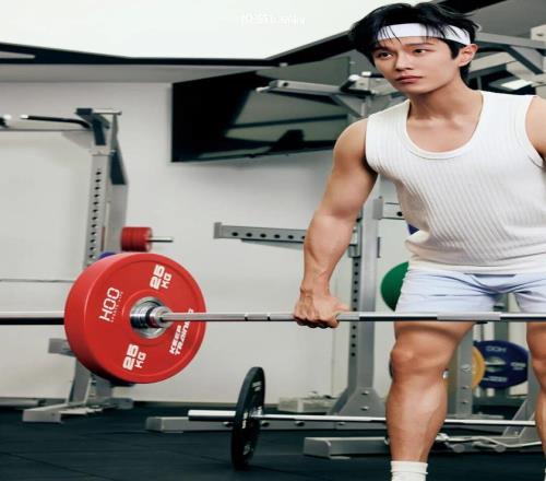 李汶翰握紧器械,手臂肌肉线条在发力时清晰紧绷,每一次推举都带着精准的控制感;周洁琼在瑜伽垫上完成拉伸,腰背舒展成流畅的弧线,指尖轻触脚尖时,柔韧度与力量感完美融合,发丝随动作轻轻晃动;吴旭则在李汶翰的保护下使用哑铃推举,感受着呼吸与自我的连接。
