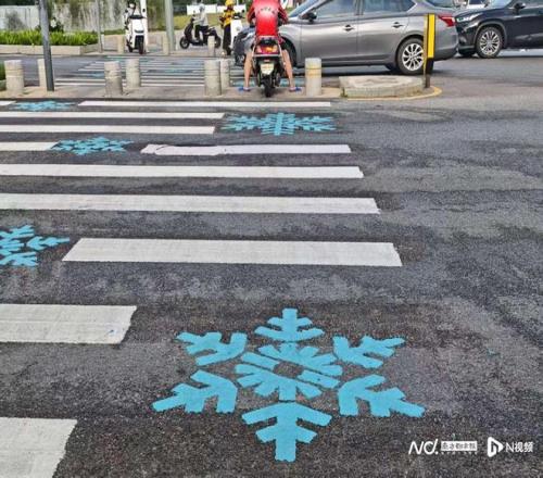 周边的斑马线特意融入“雪花”设计元素。