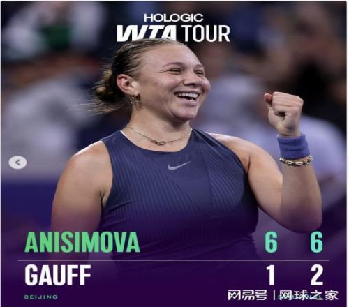 首盘比赛,阿尼西莫娃迅速进入状态,凭借精准而有力的击球连续破发,以6-1轻松拿下。第二盘,高芙试图调整战术寻找反击机会,但阿尼西莫娃延续了火热的手感,没有给卫冕冠军任何翻盘的机会,以6-2再下一城,锁定决赛席位。