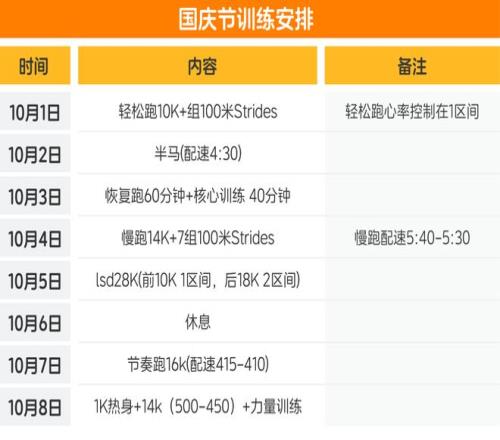 她表示自己如果确定12号要去比赛,那么国庆的30公里会改成25公里有氧和5公里马配跑。