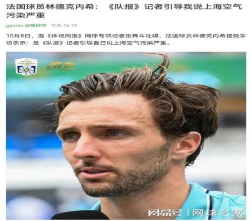 上海大师赛渐入高潮后,随着赛事的竞争越来越激烈,谁也没有想到传得沸沸扬扬中国污染严重事件意外出了大反转,当事人法国人林德克内希公然替自己喊冤。