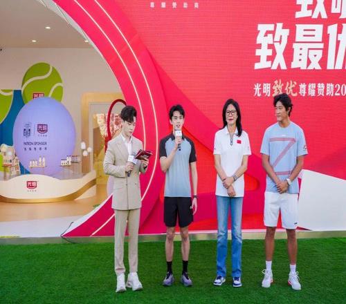 这份因光明而生的温暖,亦在消费者与合作伙伴间持续流转。致优奶粉品牌经销商代表,以及从首届光明健康生活节中脱颖而出的光明随心订幸运消费者受邀莅临现场,并分别登台分享了与光明跨越时光的联结故事——从长期信赖的合作情谊,到日常相伴的消费记忆,让品牌与合作伙伴、消费者的情感纽带愈发真切可感。为回馈经销商伙伴长久以来的信任与同行,黄黎明亲自为其颁发“尊耀合作伙伴”奖杯,“光明鲜活大使”张之臻同步送上亲笔签名网球。这份特别致意,既是以赛场上的拼搏精神,呼应光明乳业百年来对品质的坚守,更见证了双方携手共进的深厚情谊。
