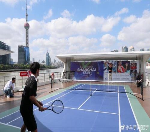 和费天王在黄浦江上切磋了一下网球!