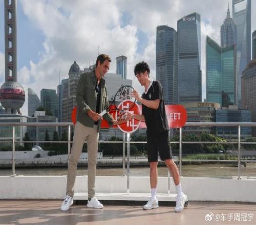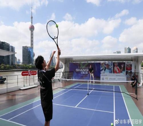 上海大师赛举办期间,超级挚友费德勒携手中国首位F1车手周冠宇登上浦江游轮,在遍览江景的同时,打了一场特别的水上网球。