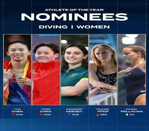 10月14日上午,世界泳联公布年度最佳女子跳水运动员候选名单,中国选手陈芋汐、陈艺文入围。