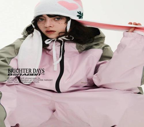 来自韩国的 BSRABBIT ,是创立于 2012 年的韩国品牌,凭借极具标识性的大小孩风格,动物印花和明亮配色吸引了大批颜值至上的性消费者关注。BSRABBIT 的 BS是 SNOWBOARD 和 STREET 的缩写,并以兔子图案作为品牌标识,意为无论是在雪山上还是在路上,都能像兔子一样奔驰。