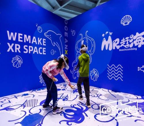 市民在歌尔展区MR大空间体验沉浸式赶海