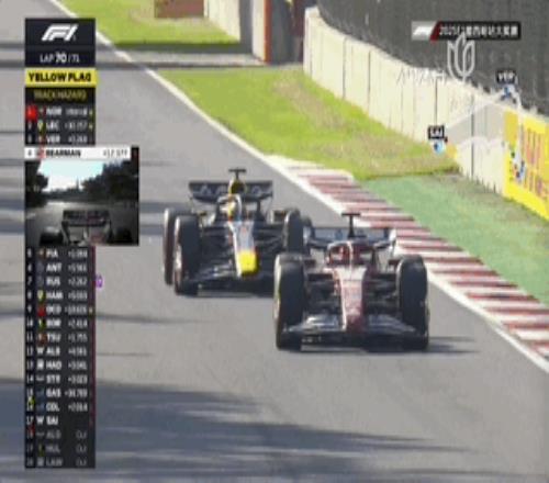 第66圈,维斯塔潘已经追到勒克莱尔身后2.4秒!第68圈,维斯塔潘将差距缩小到了1.3秒!而后方皮亚斯特里已经追到了比尔曼身后1.1秒!