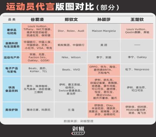 与此同时,以谷爱凌、郑钦文为代表,在国际顶级热门项目上取得突破的运动员,则开辟了另一条高价值路径。她们的代言或经纪约往往签在IMG这样的顶级体育经纪公司。依托严谨、系统化的全球运作,其代言费用可达数百万美元级别,重要赛事周期内更是水涨船高。