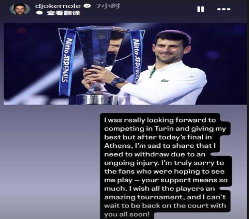 在2023年夺得年终总决赛冠军后,德约科维奇已经连续两年退出年终总决赛。因为德约退赛,目前积分排在第9的穆塞蒂也取得了年终总决赛的参赛资格。